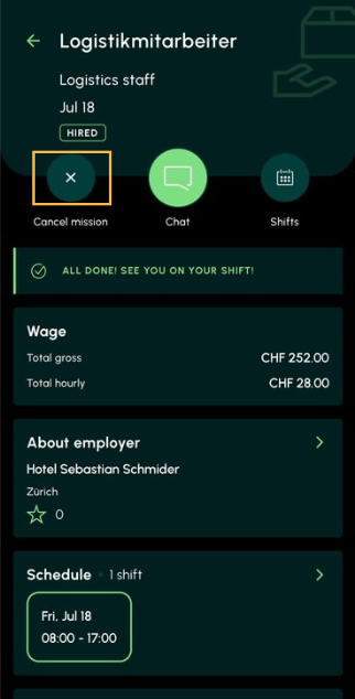 Wenn du zu einem Einsatz nicht erschienen bist, ohne vorherige Abmeldung oder einen triftigen und nachweisbaren Grund, wird dein Adia-Konto deaktiviert. Falls du dich ausnahmsweise nicht über die App abmelden kannst, zum Beispiel wegen technischer Probleme, kontaktiere uns bitte sofort per E-Mail an support@adia.ch.